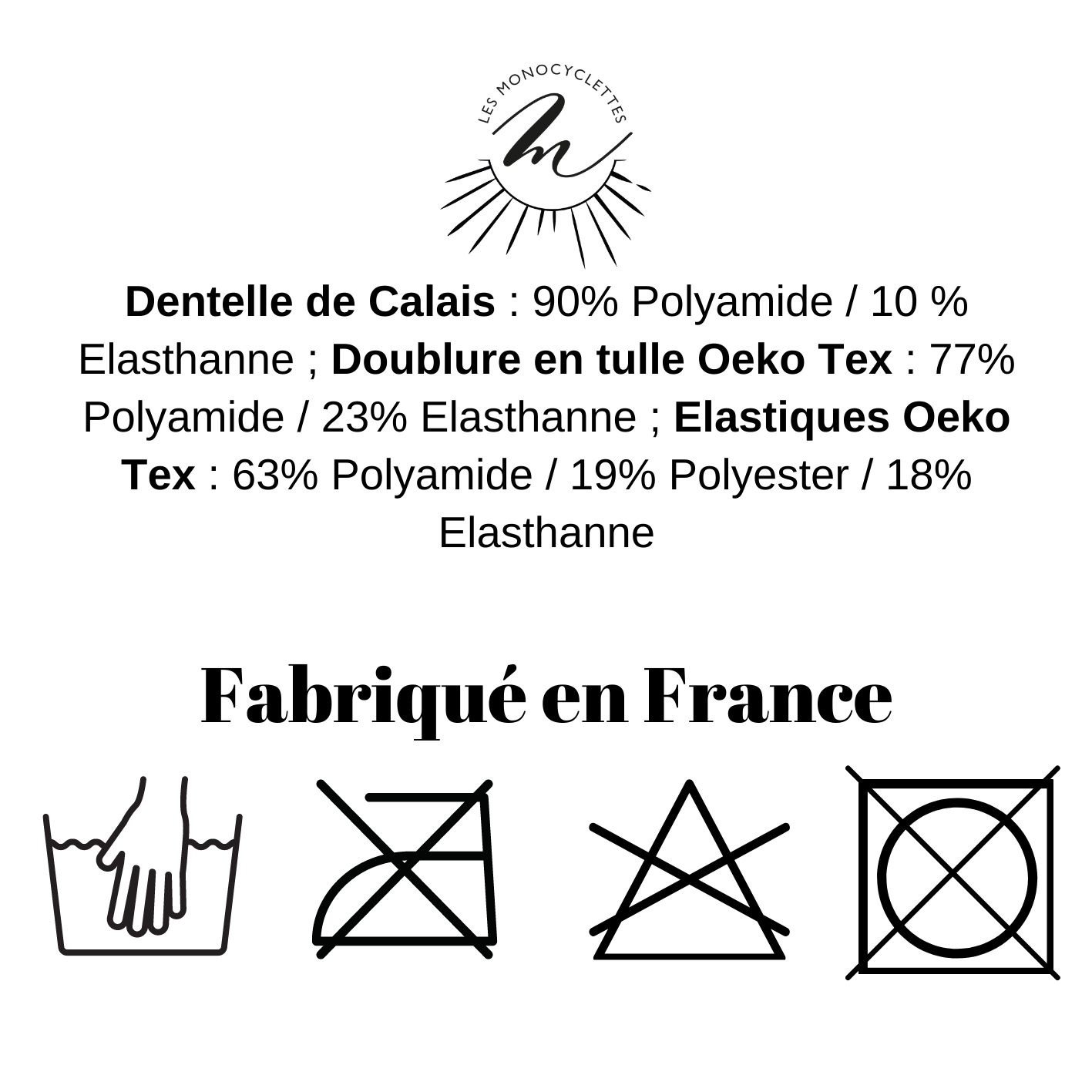 Avec nos Mono-Bonnets Plats , Osez le Sexy! En Dentelle de Calais Up-cyclée et doublure en tulle Oeko tex ou en Coton Oeko Tex.